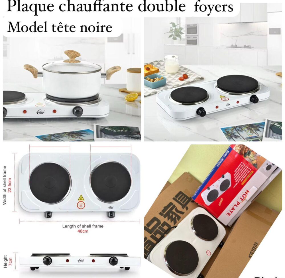 Plaque chauffante double foyers Model tête noire